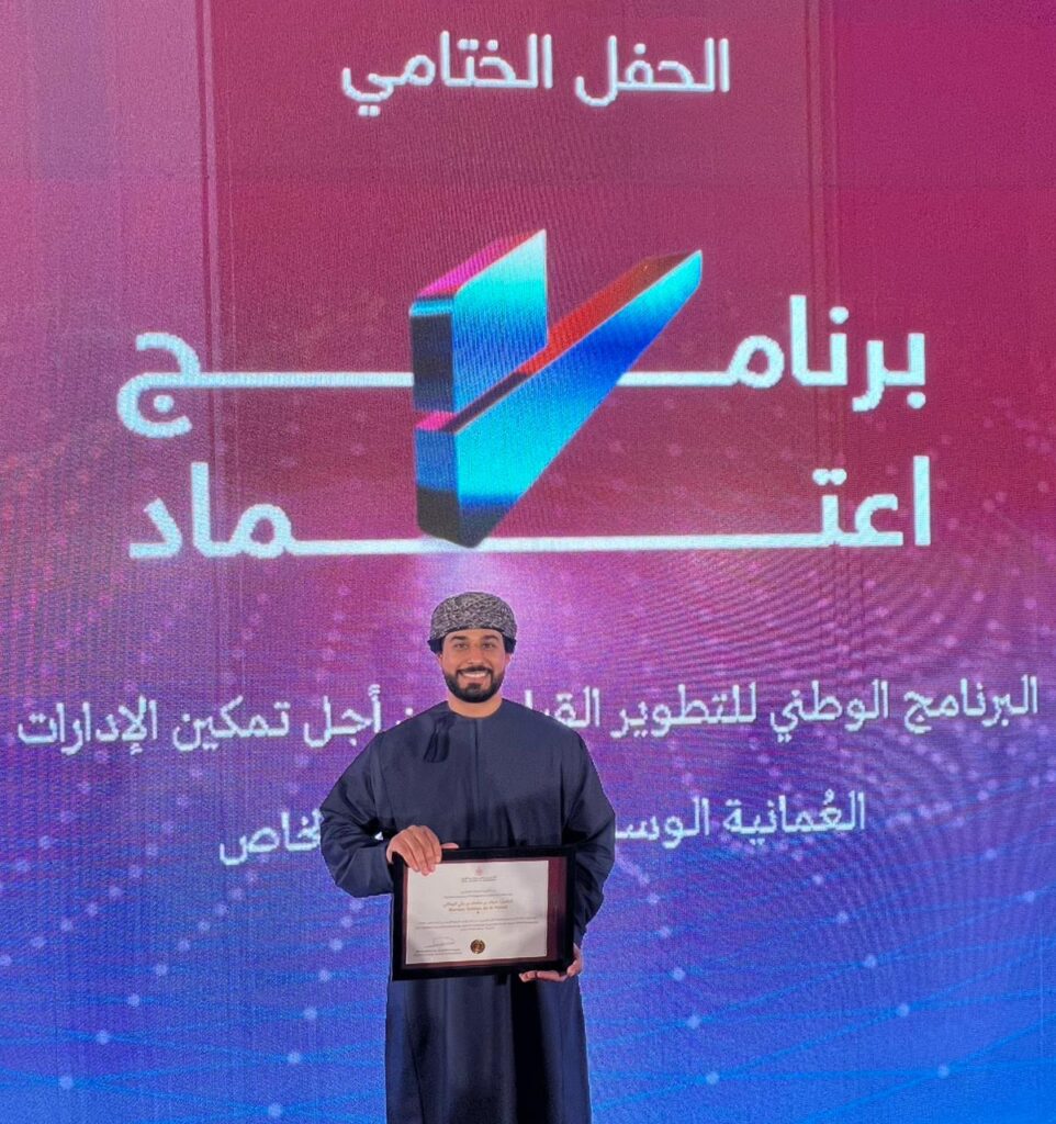 He also graduated from Etimad – The National Leadership Programme for Omani Middle Management in the Private Sector, delivered by the Royal Academy of Management, a prestigious initiative designed to develop the next generation of leadership talent in Oman.